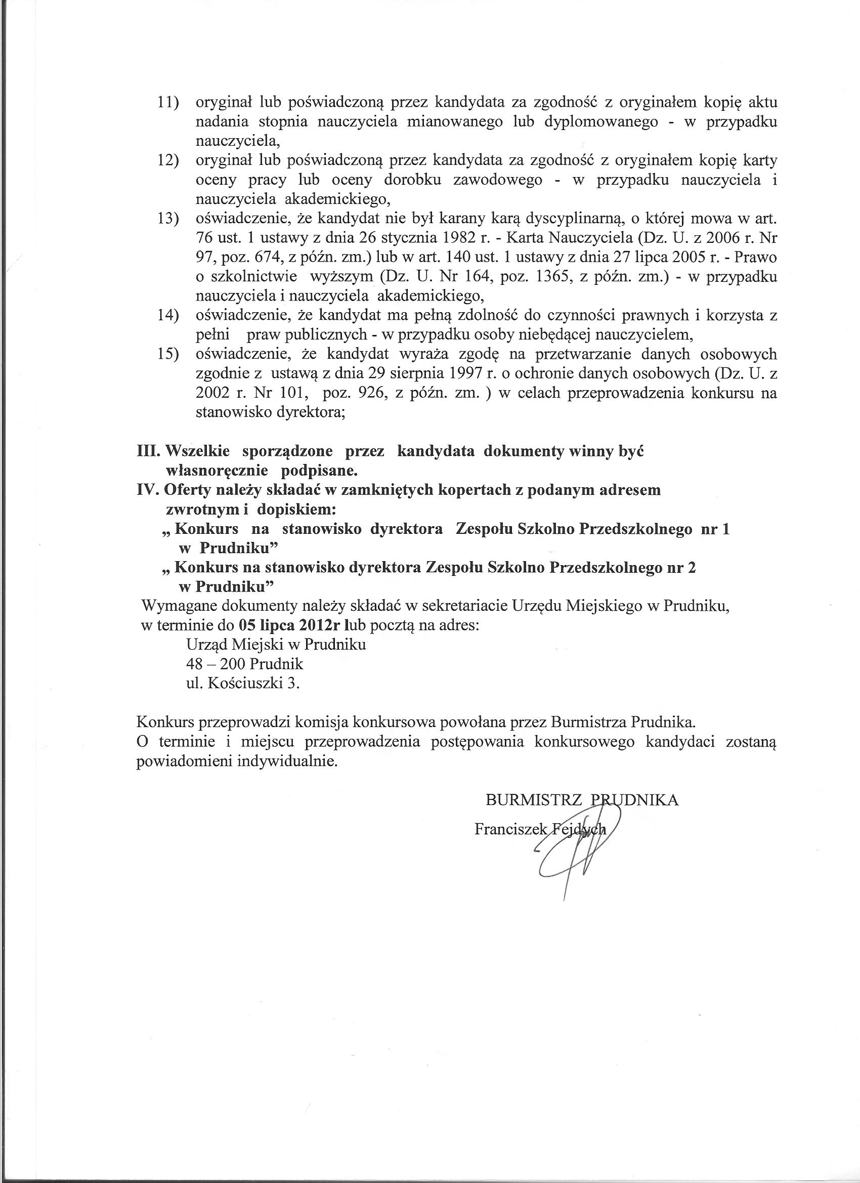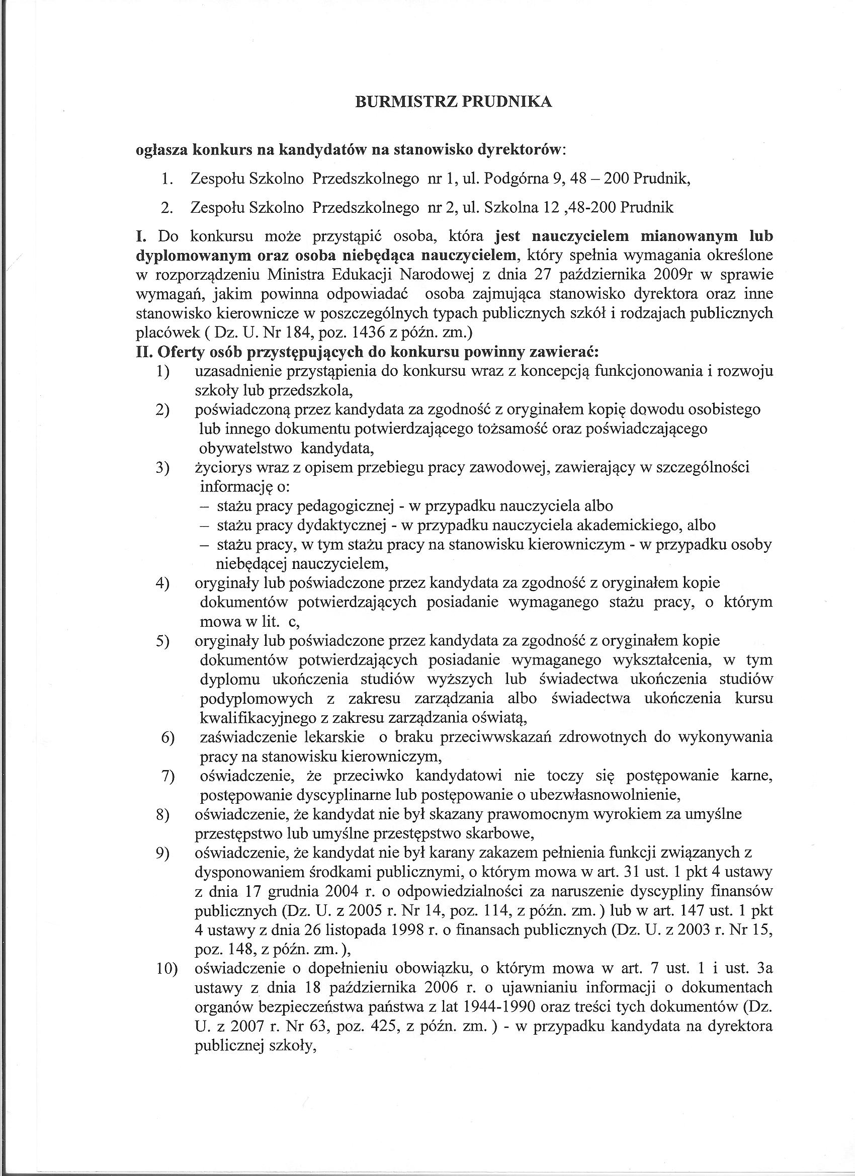 Ogłoszenie konkursu na kandydatów na stanowiska dyrektorów Zespołów Szkolno-Przedszkolnych