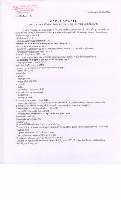 Zaproszenie na składanie ofert na świadczenie usług telefonii komórkowej