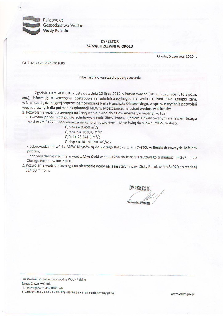 Informacja o wszczęciu postepowania z 05.06.2020r.
